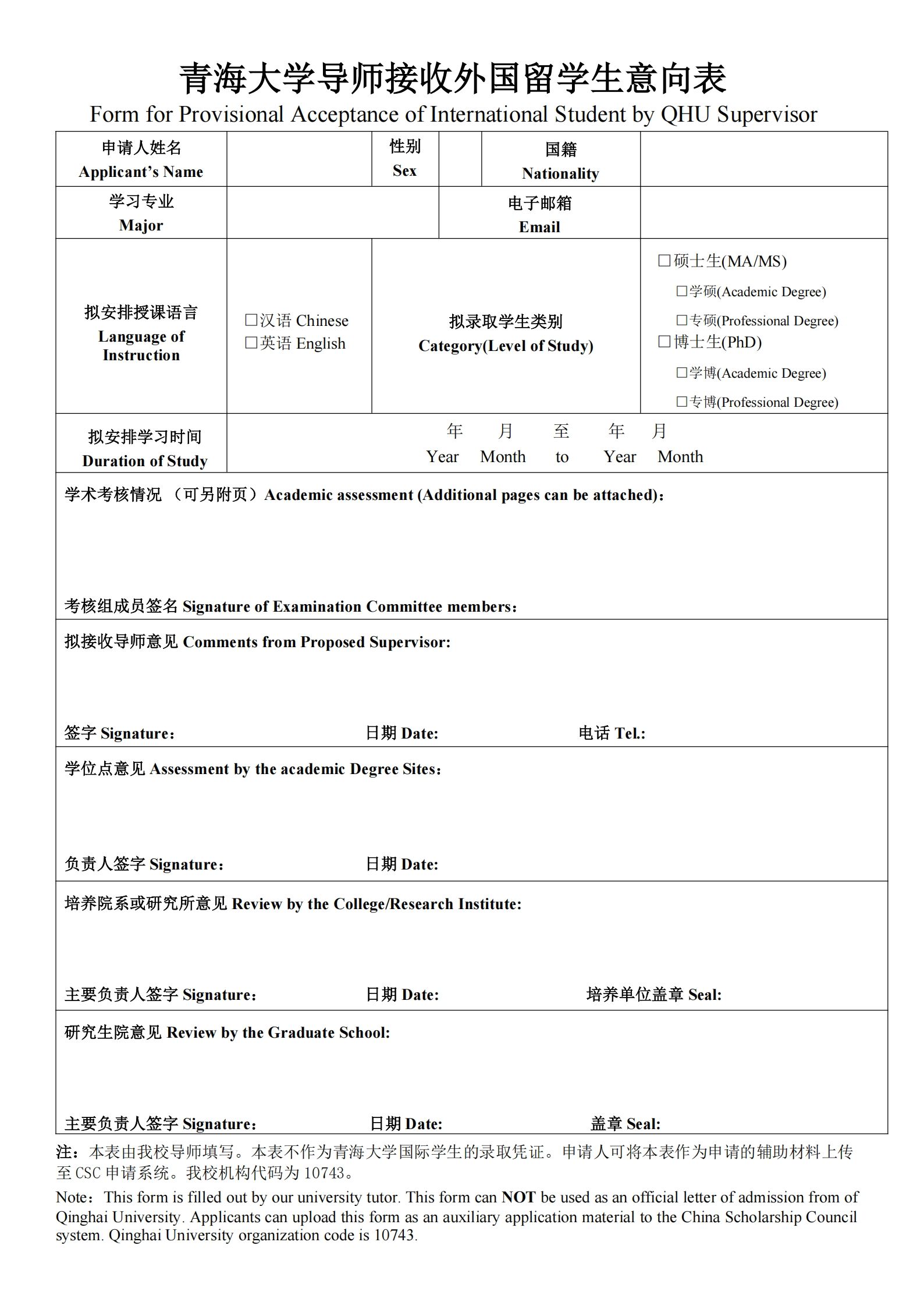 英文--Downloads--Form for Provisional Acceptance of International Student by QHU Supervisor - 副本.pdf